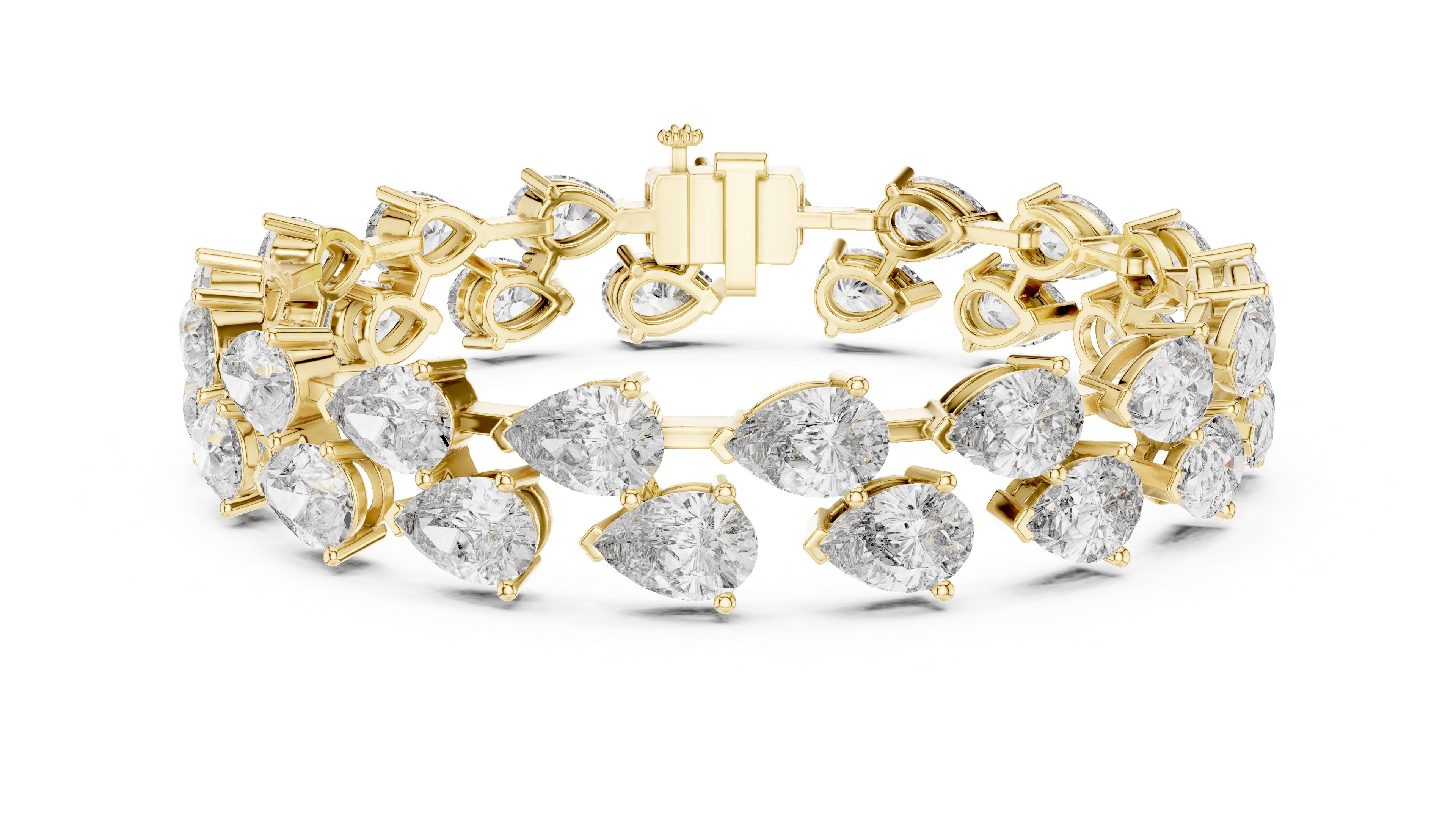 This exquisite lab-grown pear-shaped diamond bracelet features all pear-shaped diamonds, arranged meticulously for an elegant and sophisticated design. Set in your choice of 10K, 14K, or 18K gold, or silver this bracelet is a perfect blend of luxury and sustainability, making it an ideal choice for special occasions or as a timeless addition to your jewelry collection.